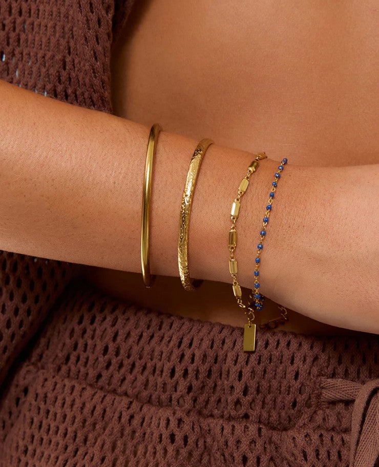 Meet the Peggy Bracelet, your new go to for a pop of fruity fun. With its blueberry coloured enamel beads and dainty design, Peggy adds an instant hit of colour to any stack. Light, vibrant, and easy to style, this bracelet layers effortlessly or stands sweetly on its own.