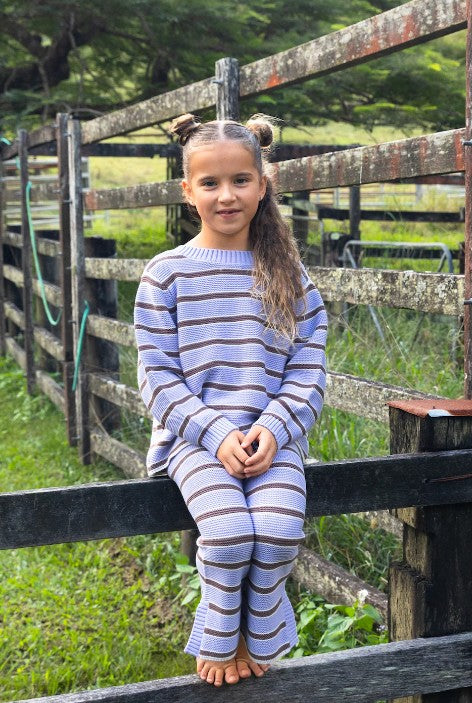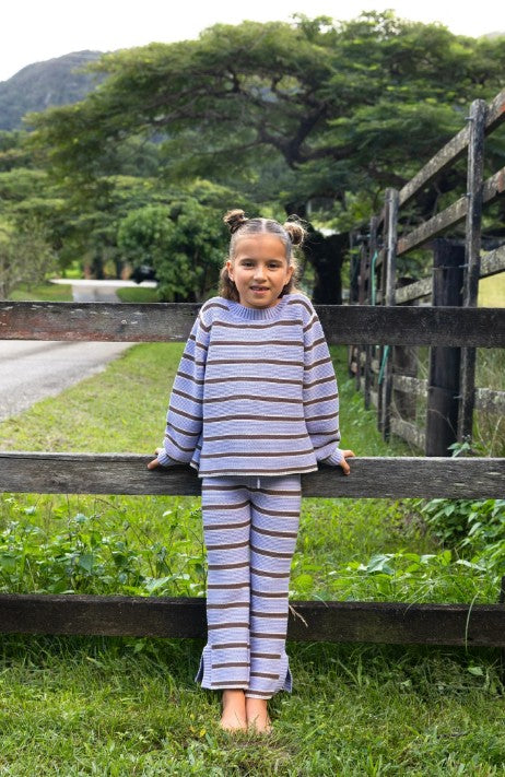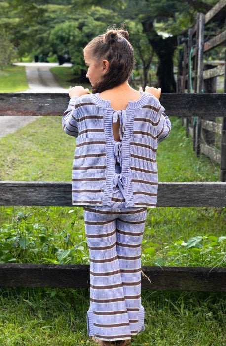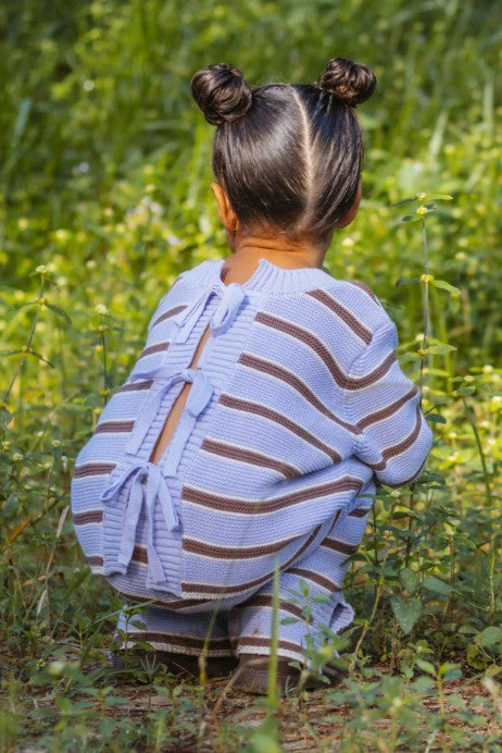 The Sierra Knit Cardi brings a fresh take on winter style with its striped pattern and sweet tie-up back detailing. Made from soft cotton knit, it’s the perfect mix of play and comfort. Style it solo or pair it with the Sierra Knit Pant.