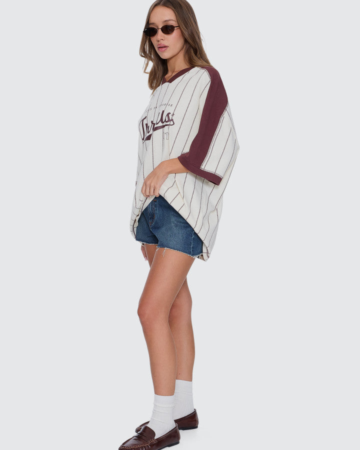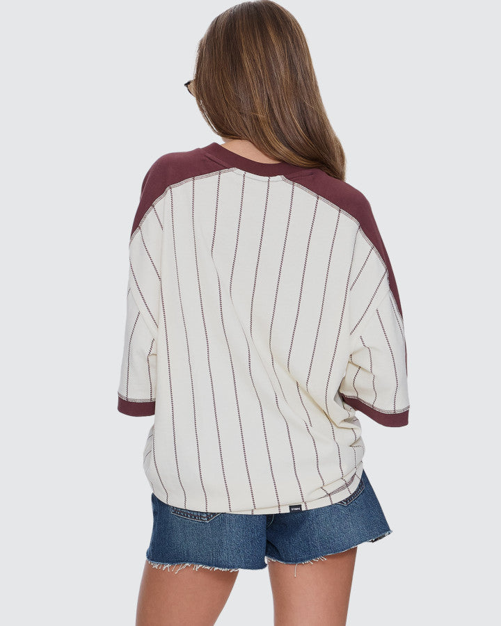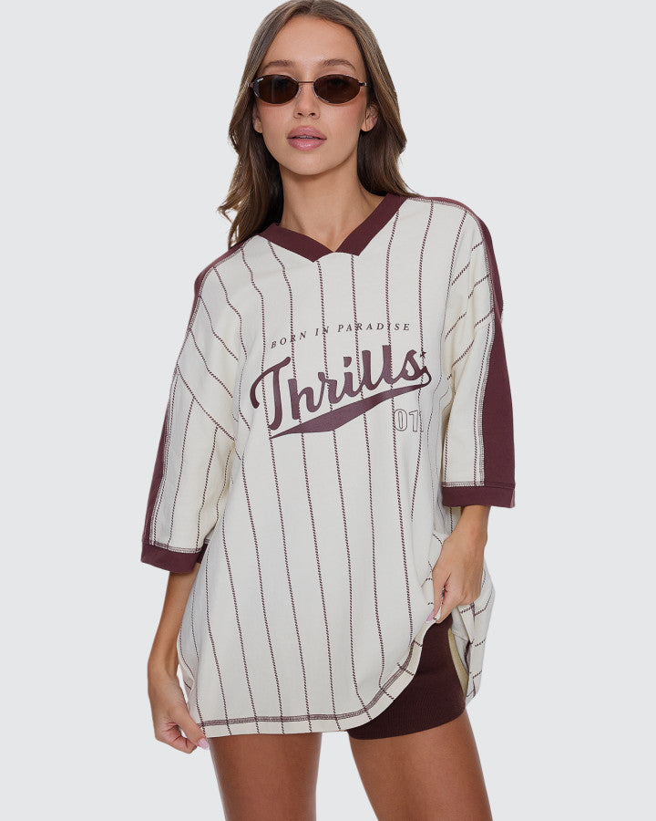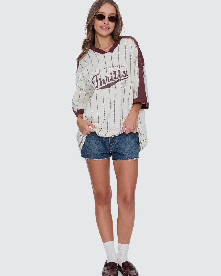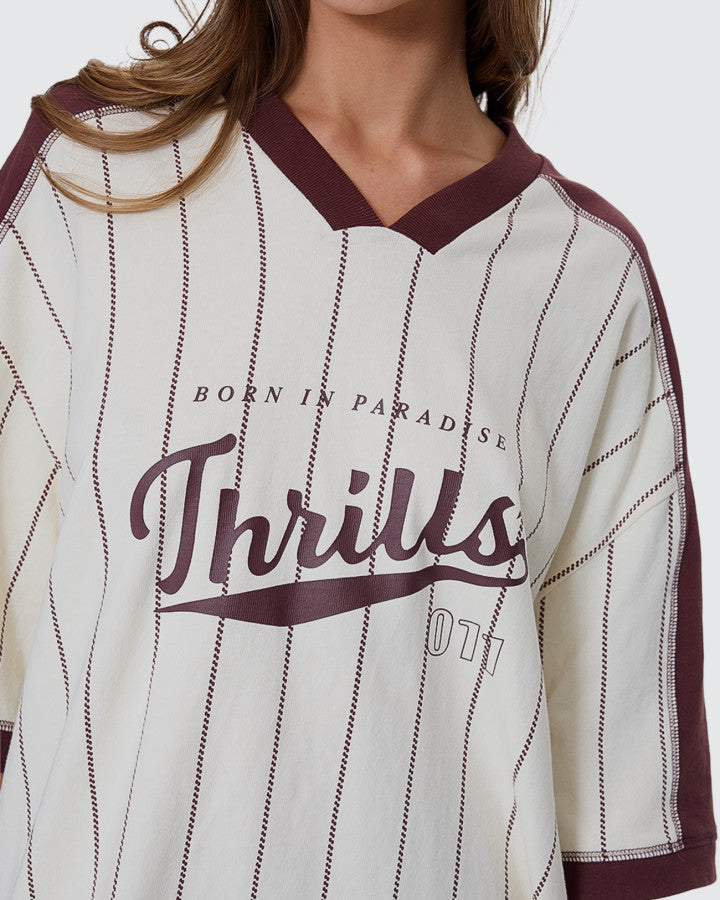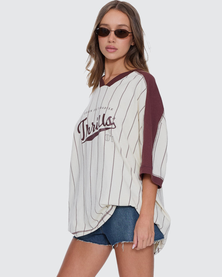 Thrills Baseline Stripe V-Neck Oversized Tee