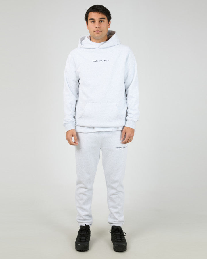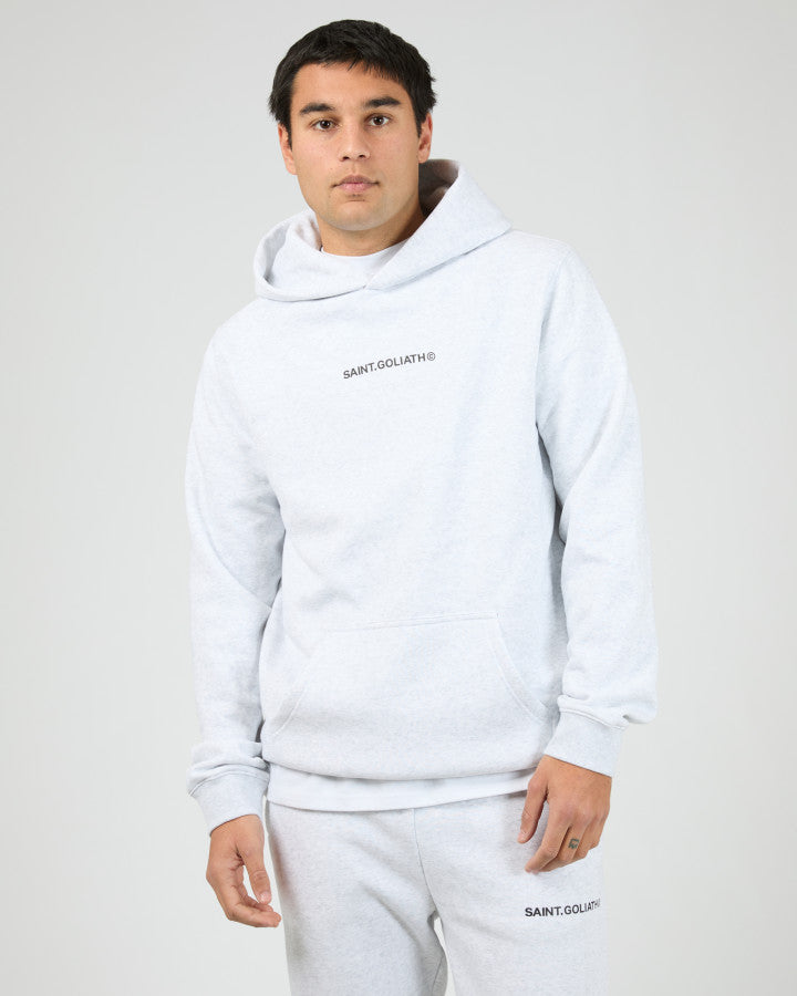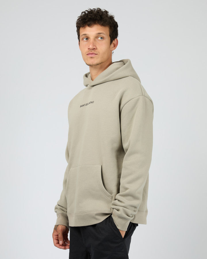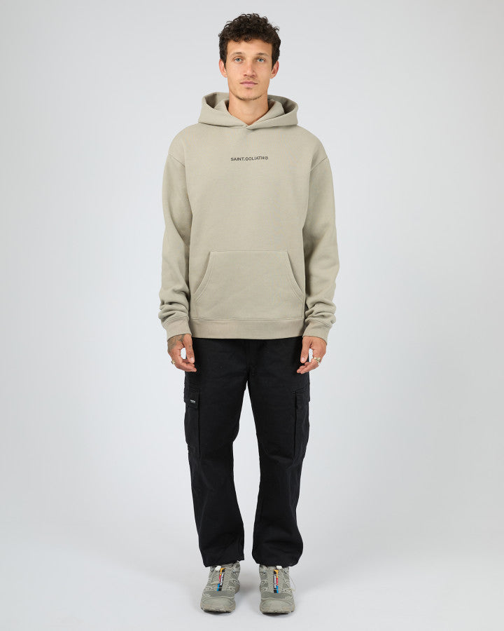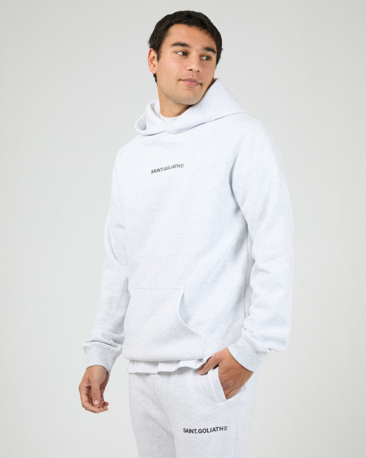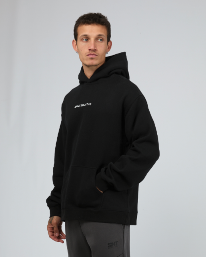 The Id Hoodie features a minimalist design with a subtle Saint Goliath graphic on the chest. Its relaxed fit and hooded neckline provide comfortable coverage and a modern silhouette, making it a versatile piece for layering or standalone wear.
