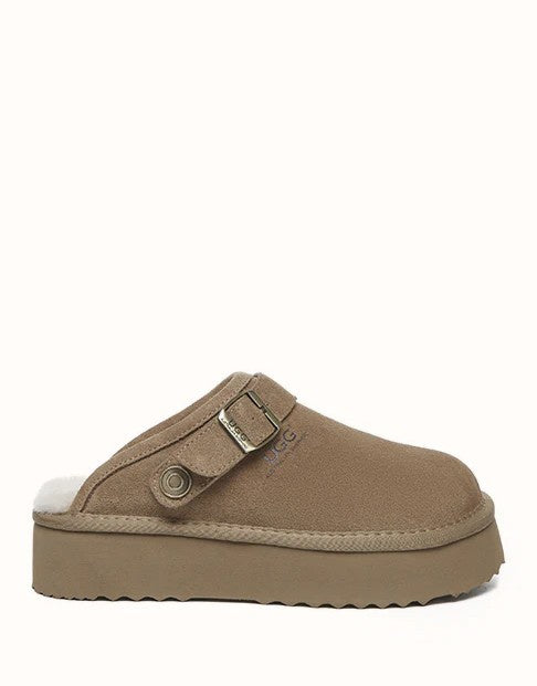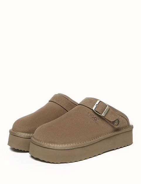 Featuring a versatile rotating strap, this innovative design effortlessly transforms from sandal to slide, blending vintage charm with modern minimalism. Crafted from premium Australian Merino sheepskin, it envelops your feet in luxurious softness, ensuring warmth and comfort all day long. The lightweight EVA platform sole adds height without compromising on comfort, delivering responsive cushioning and steadfast support for every step.
